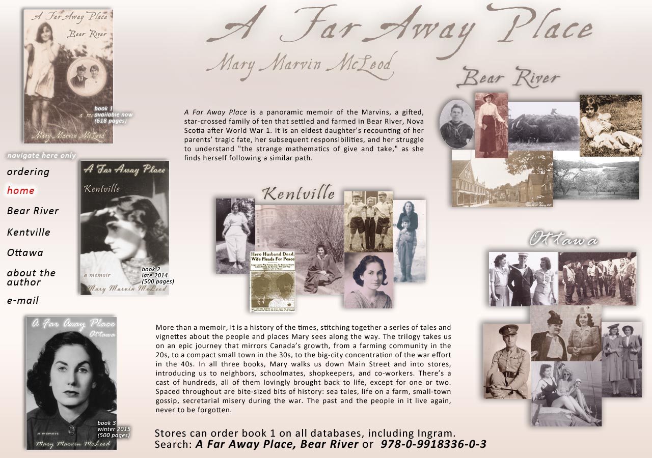Christmas, 2022. What's up? A lot. Kentville has been split into two books. 'Kentville 1' (est. 600 pages) is in very good shape and just needs more images. After 'Kentville 1' will be a book based on Daniel Marvin's military file called 'For The Record' (est. 600 pages). Mary knew nothing of what is in this file, and it tells another story altogether. It is in very good shape and almost ready to go. Next will be 'Kentville 2' (est. 600 pages), and yes, it is ready as well except for images. Finally, the Ottawa/Montreal book (est. 600 pages) is also ready, and I'm not anticipating any image problems there. Depending on how it lays out, Ottawa/Montreal may need two books, but I would rather not. Each book is slightly different, all are a lot of fun, Ottawa is very funny, but I really like 'For The Record'. It had to be done, and Mary would agree.